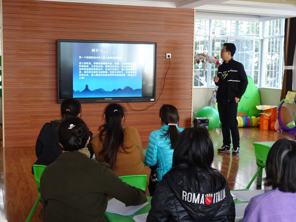 讲座中,黄医生从医学角度讲解了手足口病的定义和病毒类型、结合PPT图片和实例从手足口病的主要发病症状、危害性、传播源、传播途径进行了详细的介绍;着重对手足口病的预防措施和护理知识等方面进行细致的讲解。向参训教师强调要做好疫情登记、报告,加强晨检预检、严防交叉感染,提高手足口病病例的发现率,做到早发现、早诊断、早隔离、早治疗。结合和平幼儿园保育实践工作提出了“手足口病预防知识要点”,让教师明确预防手足口病必须做到:1.饭前便后洗手、勤洗澡、勤剪指甲、勤换衣物、勤晒被褥等;2.饮开水,吃熟食;3.尽量少到拥挤的公共场所,避免与其他有传染病的儿童接触;4.教育幼儿一旦有发热、出疹等表现要及时向老师和家长反映,并尽早到医院就诊;5.要求教师做好晨午检、消毒、通风工作。、