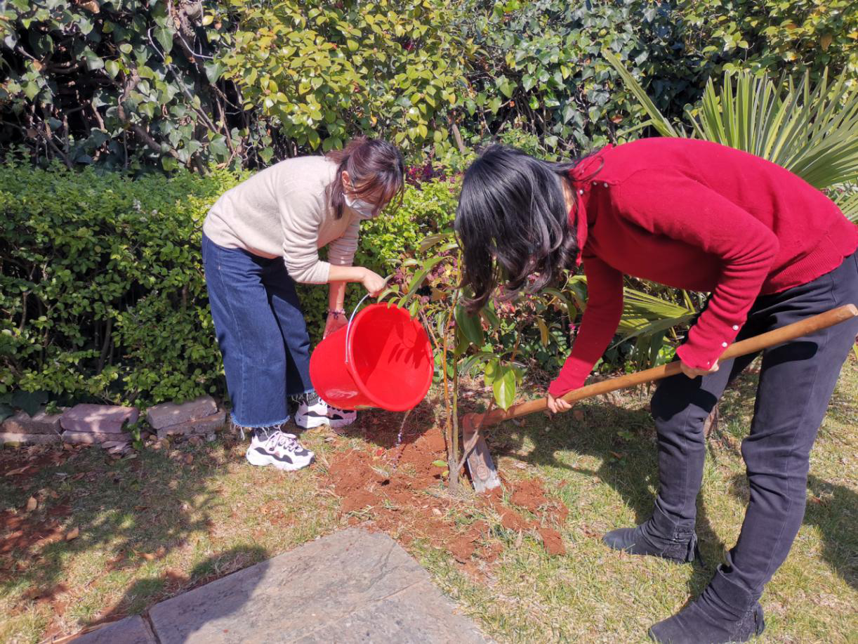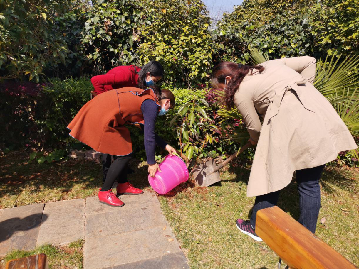 春回大地,万物复苏。近日,在这个特殊的“植树节”来临之际,安宁市第三幼儿园党支部组织部分党员干部到园开展植树节活动,为迎接新学期开学及幼儿的到来做好环境准备工作。