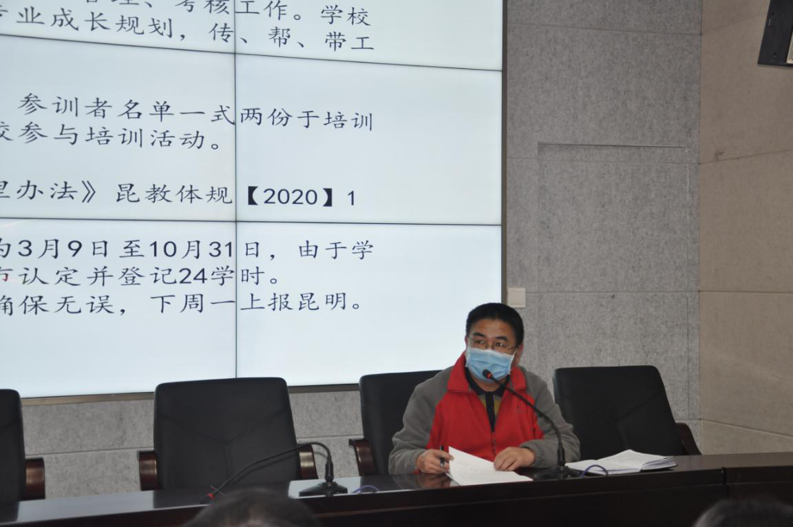 为认真贯彻落实国家、省市《关于全面深化新时代教师队伍建设改革的意见》和昆明市教育体育局“中小学教师全员培训”工作部署,切实抓好我市中小学、幼儿园教师培训工作,加快教师专业化发展步伐,安宁市基础教育发展中心组织召开了安宁市2020年师训工作会。全市各中小学分管师训工作副校长、教科室主任、学时管理员70余人参加了会议。