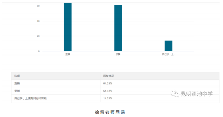 徐 老 师 专 门 做 了 问 卷 调 查 《 化 学 网 课 的 上 课 形 式 》 :
