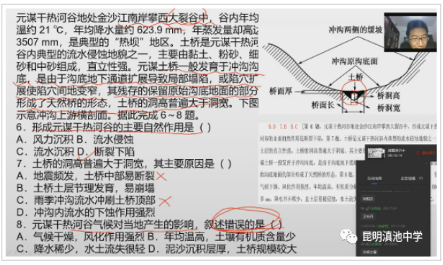 昆明滇池中学的网上地理课程,重视各种图表信息的解读,重视地理原理的教学,重视典型案 例的讲评,注意热点问题和生活中的地理问题的研究。区域地理强调区域特征的学习,在初中教学 中图文并茂,使用大量的图片和视频,增强了教学的直观性;高中地理的教学强调地理原理的理 解,使用原理图,分析典型问题,提高学生的地理思维能力,培养学生会会综合性的方法分析问 题,会对比分析问题,会寻找区域的差异。我们的地理组的网上教学中,还使用Google maps、地 图软件、拼图小程序等,使用多种手法实现空间教学的形象化。另外,地理组的段青等老师还参加 了网络科学活动,播放《行星》的科普视频,进行地理绘图比赛等,丰富了学生的生活,也提高了 学生学习地理的兴趣。