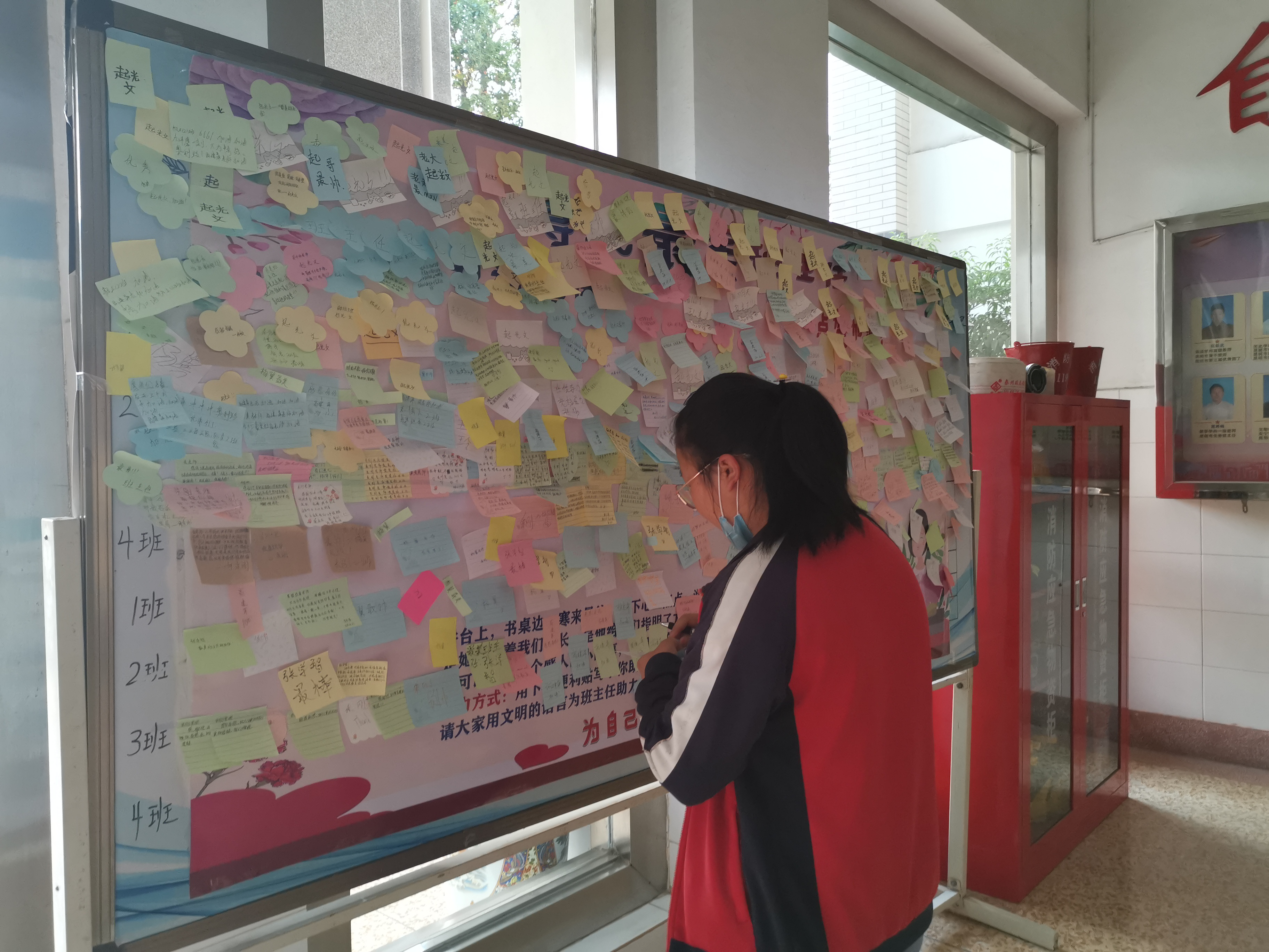 安宁一中在初中楼、高中楼设置“班主任点赞”专栏,同学们为自己的班主任“点赞”、寄语。五彩缤纷的小纸条,同学们的满满的爱师情。随后,学校将通过公众号,让同学们、家长们投票,参与评选安宁一中“最美班主任”。