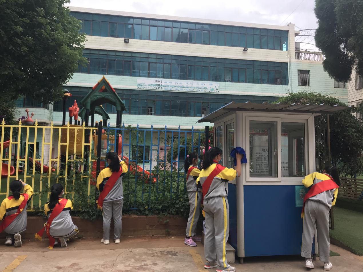大手拉小手,文明共行动。小朋友们拿起清扫工具,和老师们、社区工作者们一起走上街头、走入老旧小区共同拾捡垃圾。以实际行动,引导群众自觉摒弃不文明、不卫生习惯,宣传绿色环保理念。同学们拿着扫帚等劳动工具,不怕脏、不怕累,齐心协力,认真打扫。他们三个一群,五个一组,认真打扫卫生。学生们扫的扫、倒的倒,每个角落都能看到学生们劳动的身影,到处都是热火朝天的劳动景象。