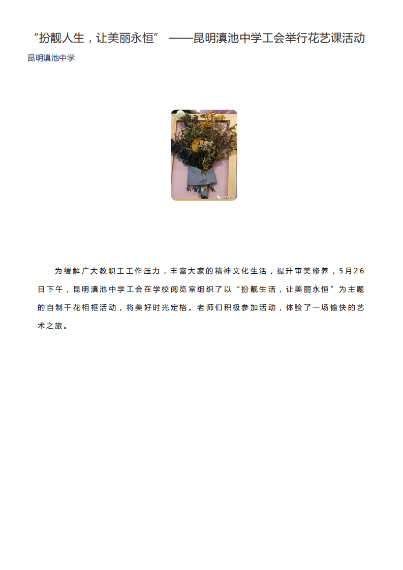 “扮靓人生,让美丽永恒”——昆明滇池中学工会举行花艺课活动