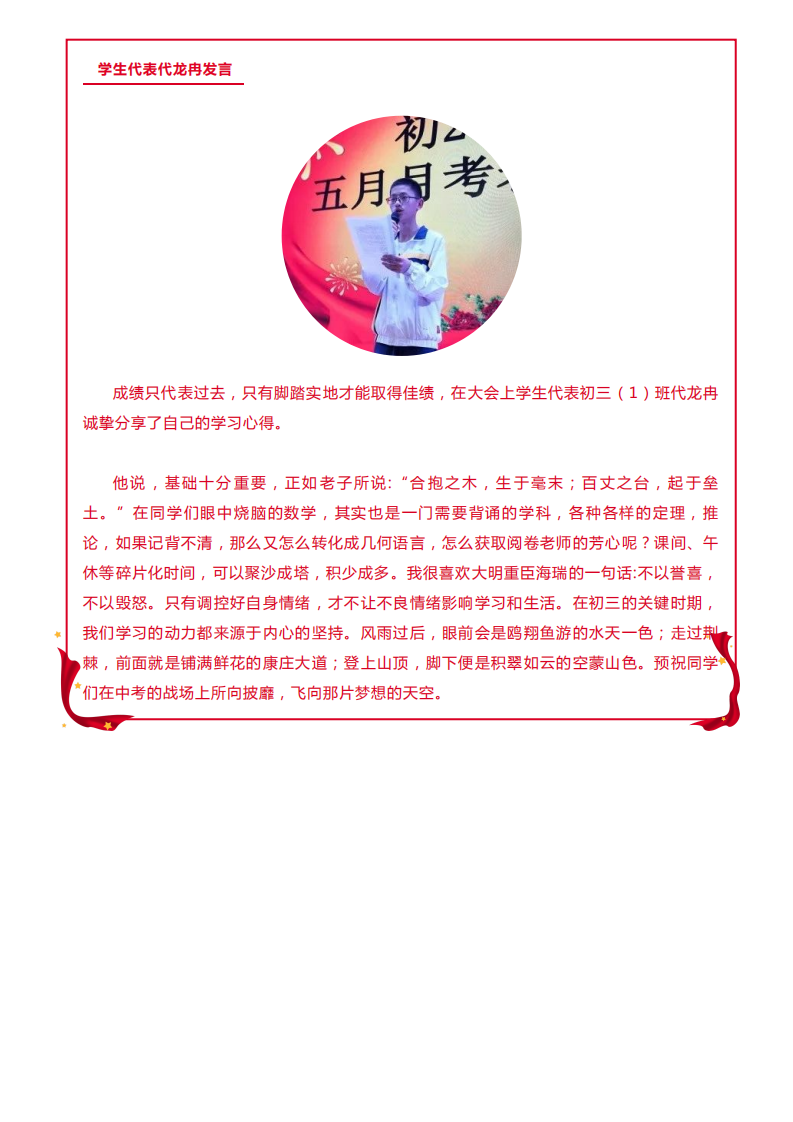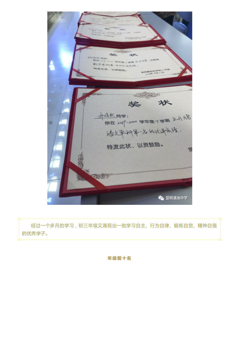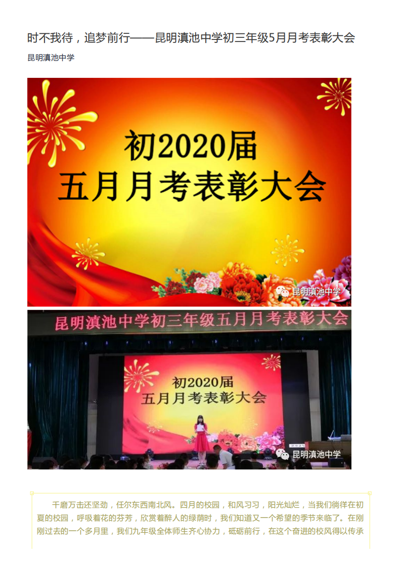时不我待,追梦前行——昆明滇池中学初三年级5月月考表彰大会
