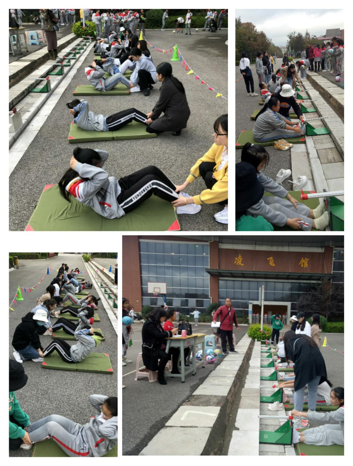 一声哨响,规范有序的测试拉开了序幕,点燃了火热的青春。看单杠上男生们矫健的身姿,展示了努力向上的斗志;仰卧起坐和坐位体前屈体现了女生们能屈能伸的态度和努力向前的决心。