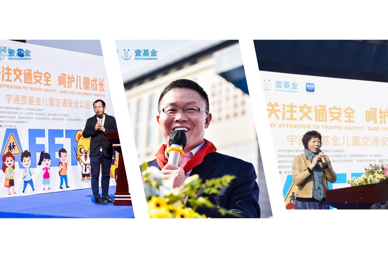 近日,昆明市官渡区关锁中心学校在田径场开展了以“关注交通安全,呵护儿童成长”为主题的宇通&壹基金儿童交通安全公益活动,本次活动由昆明市妇联牵头,市妇联副主席王学艳、区政法委书记杨汉云、区关工委常务副主任蔡平、深圳壹基金公益基金会项目负责人魏明涛、郑州宇通客车股份有限公司西南公路经营大区总经理王保建为此次活动致辞。市妇联发展部部长刘蓉、市妇女促进就业中心主任方玉、区妇联主席吕瑜、区教育体育局副局长黄建平、区司法局副局长孙杰、矣六街道党工委妇联主席张洁、昆明市公安局官渡分局政工室副主任李兴国、昆明市交警大队三大队警官杨晖等嘉宾出席活动。学校党支部书记、校长李晓玉致欢迎辞,四、五年级的同学们作为体验者参加了此次交通安全体验。