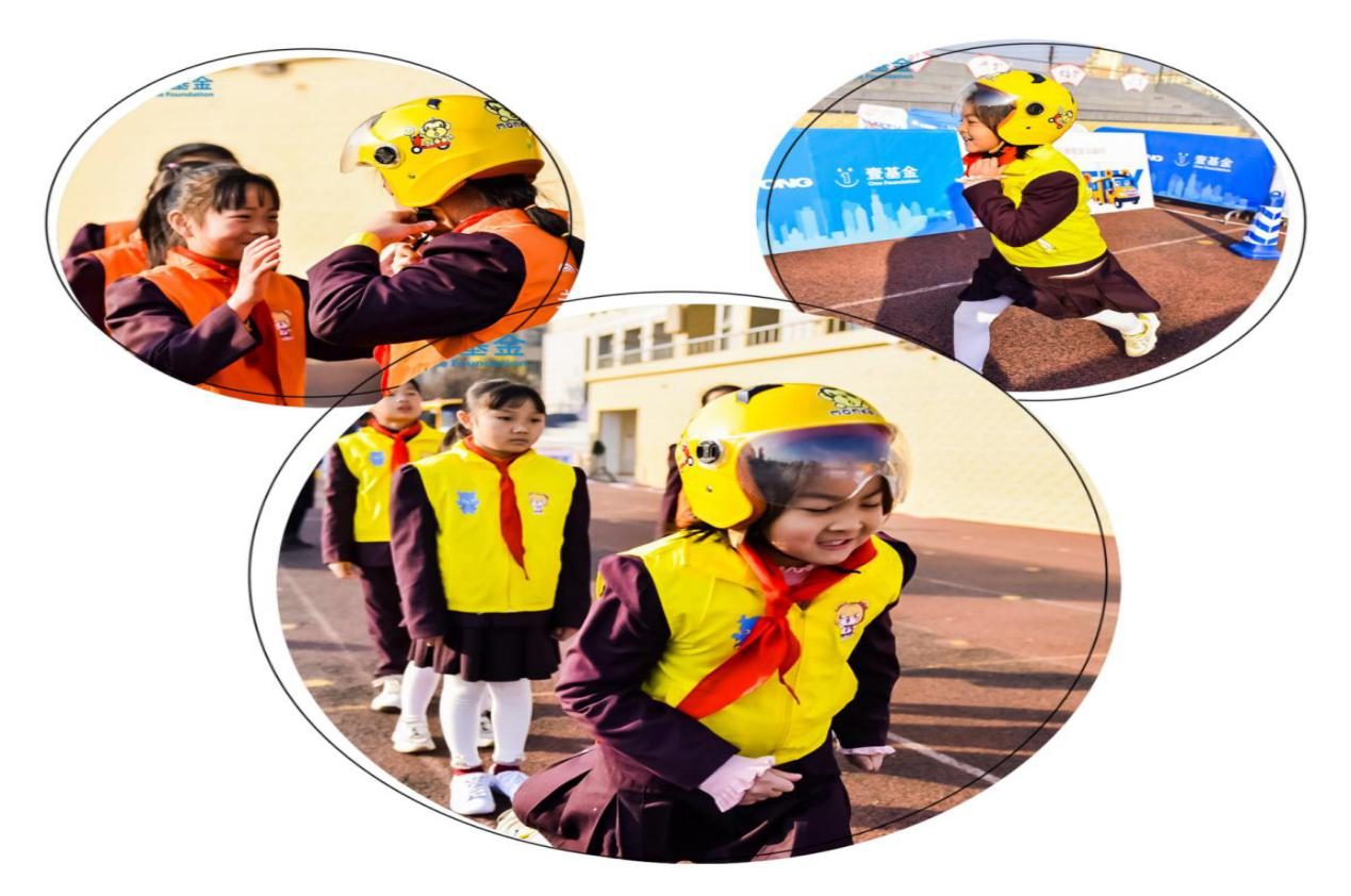 在“探索神奇的盒子”活动中,学生通过探索实验了解光线、颜色、距离等都会对视线造成影响,懂得通过身着鲜艳的衣服,从而为安全出行提供保障。在“安全头盔接力赛”活动中,学生在趣味游戏中增强了对安全头盔的探索兴趣,从而掌握正确佩戴安全头盔的方法。活动的最后,学生们绘画交通安全画报,绘出一张张充满想象、创意十足的交通安全画卷。