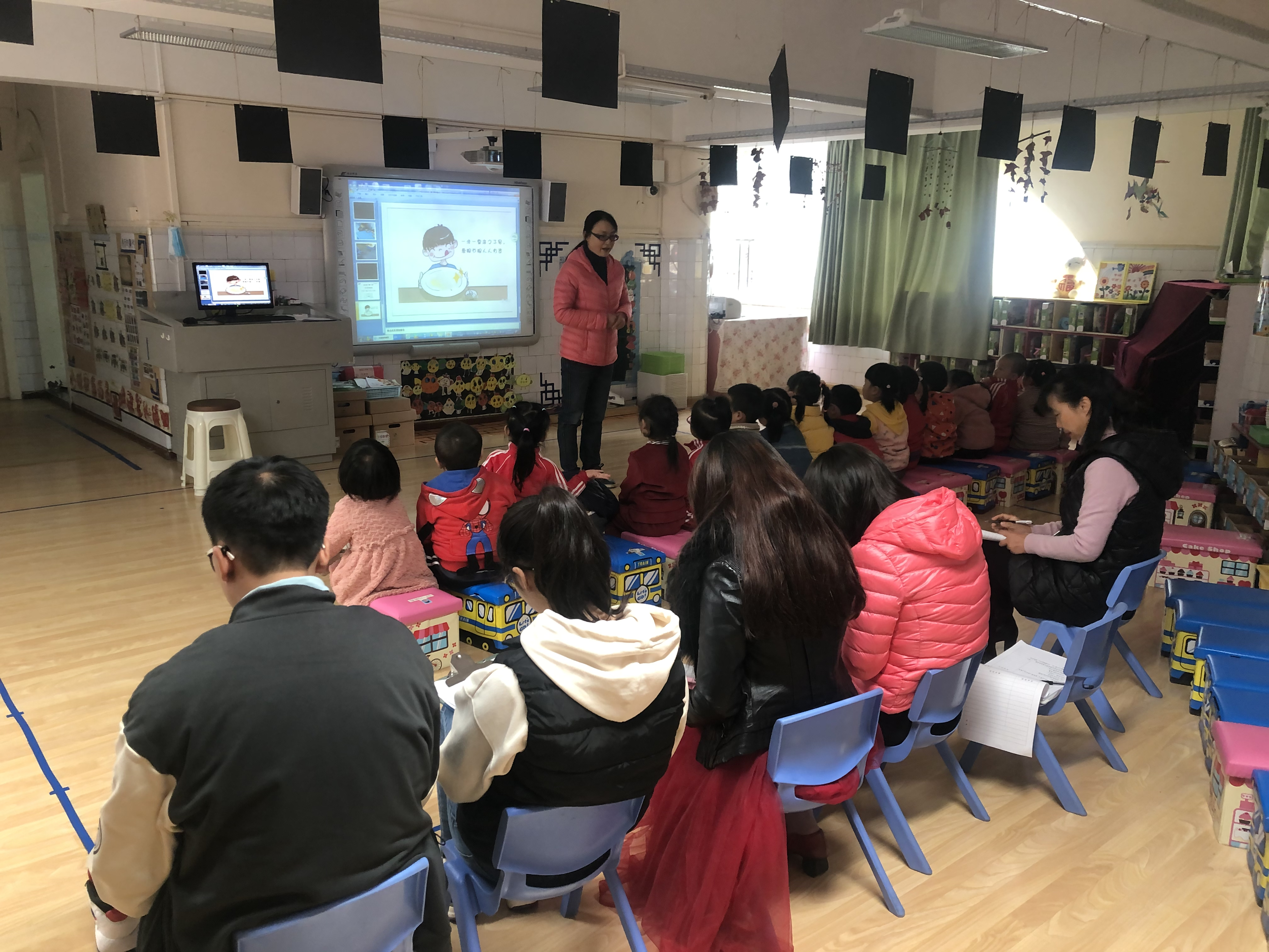 在德育主题课程实施过程中,幼儿园以发现问题为起点,以研究问题为方法,以解决问题为目标,在“浅”入“深”出的研讨活动中促进各层次教师的共同进步,进而提升课程实施的实效性。此次教研活动分别由骨干教师组、成熟型教师组和青年教师组组成,针对各年龄段幼儿特点,进行教学分析和设计,并开展教学活动。