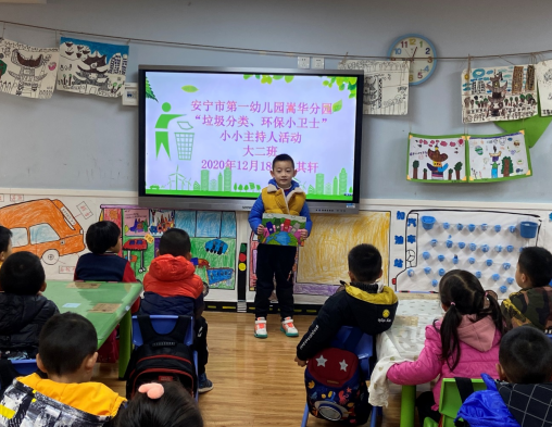 活动前,老师们通过引导幼儿学习“安宁市生活垃圾分类指南”,日常生活中有疑惑的垃圾对照指南中具体分类投放项目进行明确、小主持人活动、分享绘本《垃圾不见了》及益智区“垃圾分类投放”游戏等,丰富幼儿垃圾分类知识。