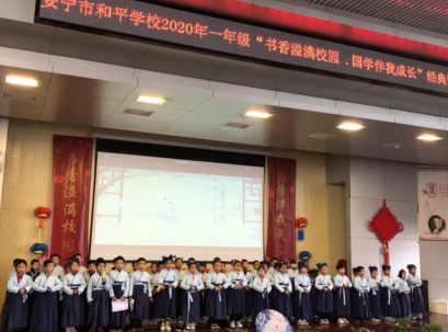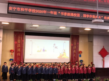 在学校领导的关心和支持下,经过一段时间的紧张筹备,安宁市和平学校一年级"书香溢满校园,国学伴我成长”国学经典诵读比赛终于拉开了帷幕。