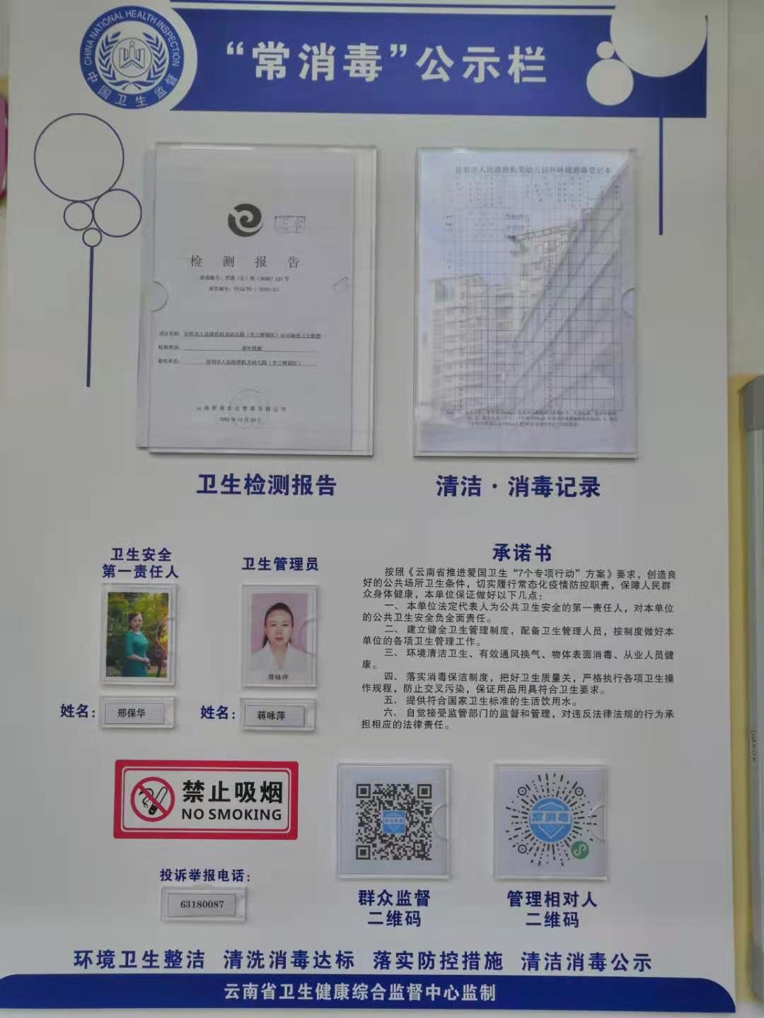 幼儿园运用微信群、公众号、电子屏、宣传栏等途径,加强了宣传氛围,让每个教职工都知晓、都参与。对照教体局的各项要求,配备和完善了五个园区的洗手设施设备、常消毒公示栏、厕所管理公示牌等。同时,开展了每日的清洁消毒工作和每周五的大扫除活动,对园区内外环境进行全面清洁消毒,做到园区环境无卫生死角,各部门、各功能室、卫生间等重点区域每天清洁消毒全覆盖,垃圾日产日清,严防传染性疾病在园传播。