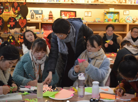 新年伊始,云南师范大学学前教育专家李红教授于近日,又一次来到安宁二幼熊云虹美术特色工作室,为全体教师作剪纸技能培训。60多位教师心怀期待,一早就来到工作室等候。
