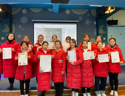 官渡区幼儿园的老师们除了“弹唱跳”技能厉害、教学厉害,在自制玩教具的比赛中也是各显神通,绘画作品纷呈,书法技艺精进,制作了运动类、建构类、艺术类、益智类、综合类等很多不同类型的玩教具,在青蓝工程汇报演出的最后,青年教师纷纷邀请“师傅”们上台合影留念,感谢师傅们一学期的辛苦指导,相信这群青年教师在师傅们的帮助下一定能逐风破浪,展翅飞翔!