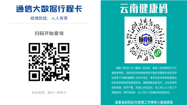 (四)现场扫码并出示“云南健康码”和“通信大数据行程卡”的绿码;
