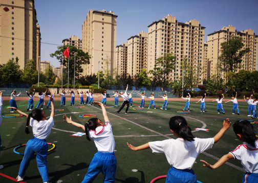 第三节课,是吕莎老师执教的《跳跃练习》。吕老师设置“小白兔”一角色,通过让学生扮演小白兔来体会双脚起跳、双脚同时落地、上下肢协调配合等教学重难点。吕老师将体育课的教学内容与数学知识相结合,提高了学生的学习兴趣,在整堂课欢乐的氛围中学生们通过各项练习不仅锻炼了协调性、灵敏性,而且让学生们将对体育的学习热情迁移到了其他学科。