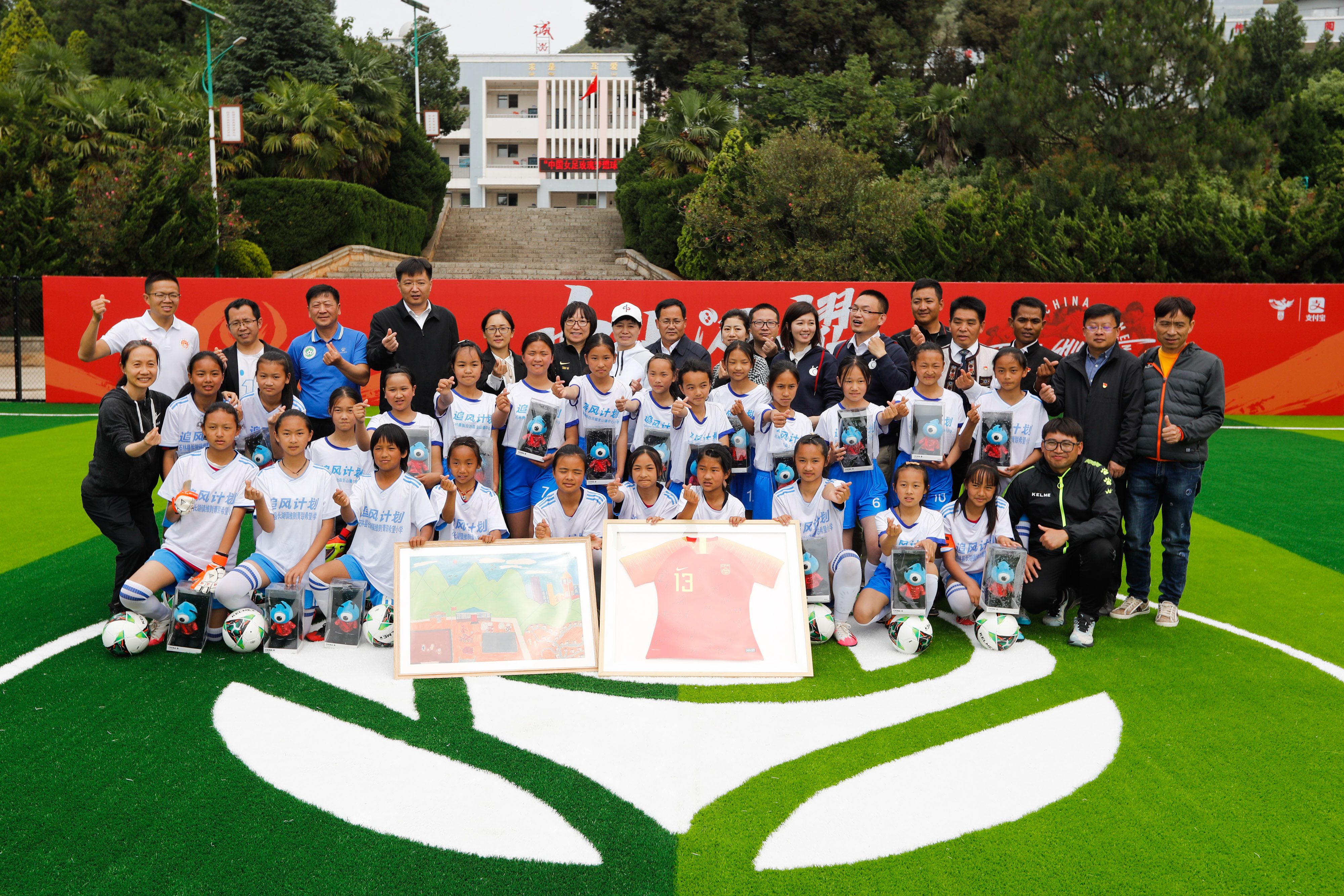 同时,中国足协与学校领导互赠礼物,中国青少年发展基金会捐赠足球装备(追风计划球衣),壹基金代表捐赠足球装备(足球)。出席本次揭幕仪式的还有:中国足球协会执委、媒体公关部部长戴晓微,前女足国家队运动员、著名女足教练员刘爱玲,前女足国家队运动员、著名女足教练员王丽平,中国青少年发展基金会党委常委、副秘书长张华伟,支付宝公益基金会秘书长李姗姗,蚂蚁集团体育总经理王鹏,深圳壹基金公益基金会助理秘书长魏明涛,昆明市足球协会常务副主席、秘书长方亚林,云南省足球协会培训部副部长王程,石林县教育工委副书记、石林县教育体育局党组书记张云喜,以及石林县长湖中心学校、云南师范大学附属中学呈贡校区、云南师范大学附属润城学校的相关领导和长湖镇维则青联希望小学师生。