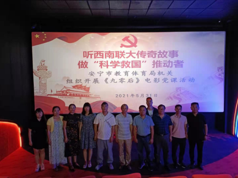 安宁市教育体育局机关党支部与工会于近日联合组织机关全体党员、干部职工 40人,以“听西南联大传奇故事,做‘科学救国’推动者”为主题,以电影为载体开展党史学习教育。