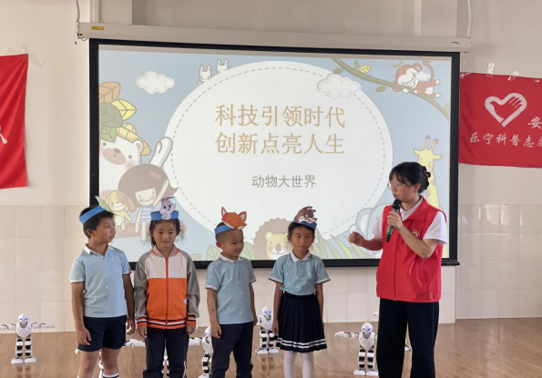 科技是科学与技术总称,科学是人类所积累的关于自然、社会、思维的知识体系,科学离不开技术。为了进一步提高师幼、家长参与科普活动的兴趣,培养小朋友的创新精神和实践能力,增强爱科学、学科学、用科学的意识,近日,安宁市第三幼儿园承办了由安宁市科学技术协会、安宁市教育体育局、安宁市基础教育发展中心及安宁市乐宁科普志愿服务队组织的以“科技引领时代,创新点亮人生——动物大世界”为主题的科普进校园活动,幼儿园大班40余位小朋友及部分家长参与了此次活动。
