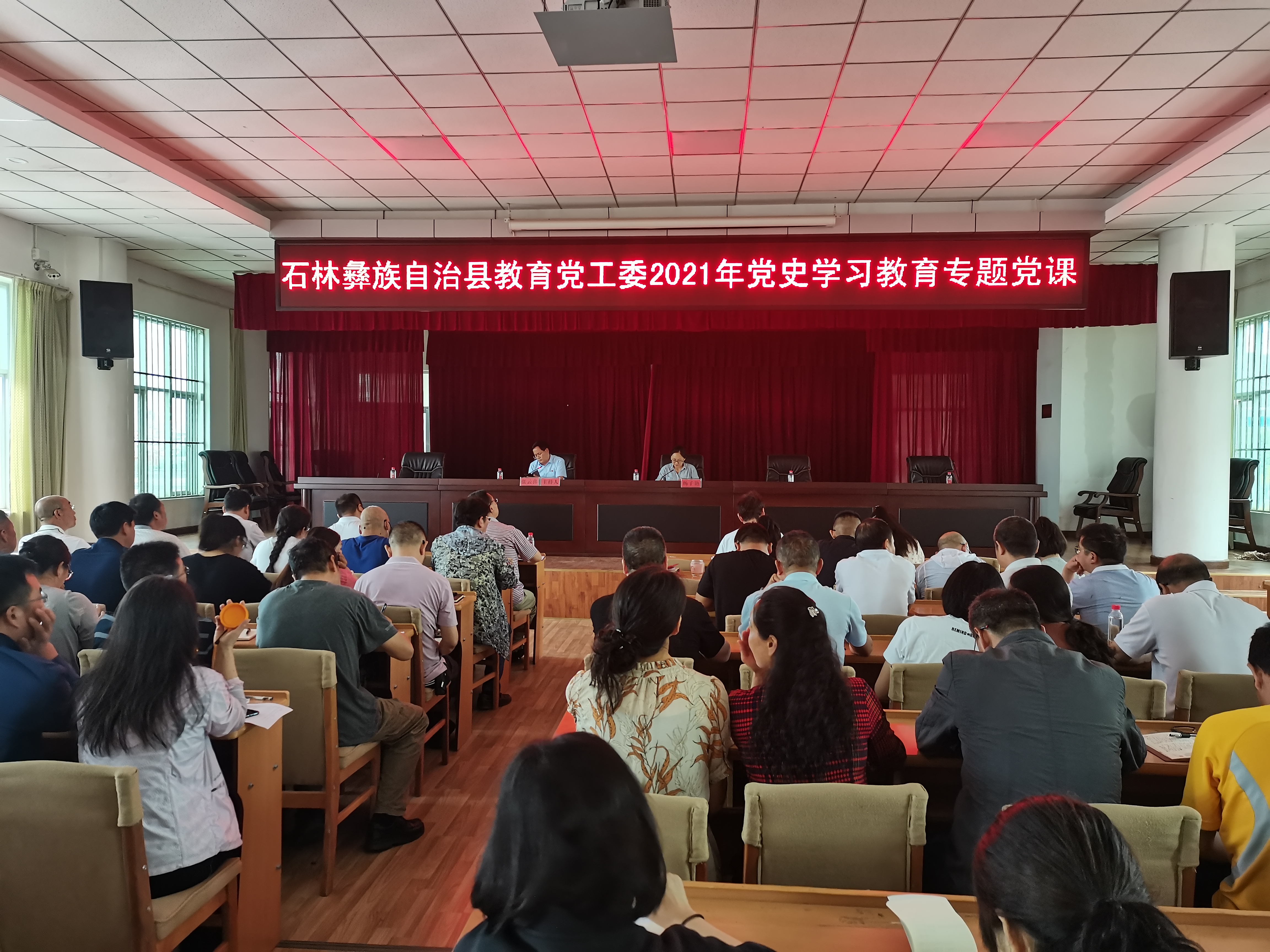 为全面了解党的发展历程,从百年精神谱系中汲取奋进新征程的伟力,近日,石林县教育工委举办党史学习教育专题宣讲。宣讲由县人民政府党组成员、副县长、县教育党工委书记杨子艳同志主讲,石林县教育党工委副书记张云喜主持。杨副县长从深学党史,重温百年光辉历程;对标对表,高质量开展党史学习教育;学史力行,着力提高党史学习教育成效三方面进行宣讲。石林县教体局全体干部职工参加宣讲,共计90余人。