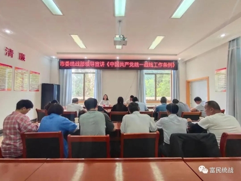 为深入学习宣传贯彻落实《中国共产党统一战线工作条例》(以下简称《条例》),近日,市委统战部副部长、市侨办主任张竞率队到富民县开展《条例》宣讲。