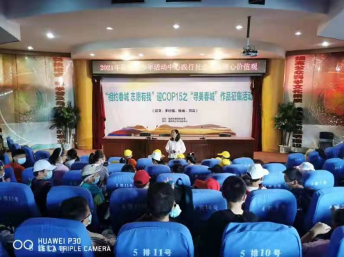 出发前,在昆明青少年活动中心科技宫报告厅,老师为即将参加本次活动的42名同学召开了动员会。动员学生要通过本次活动,学习了解云南珍惜植物、濒危植物及物种的相关知识;要通过在参观活动中,注意收集各种形状和落叶,为制作树叶标本或树叶创意画做准备;要通过活动学到知识,有所感悟,为积极参加“相约春城 志愿有我”迎COP15之“寻美春城”作品征集活动做准备。