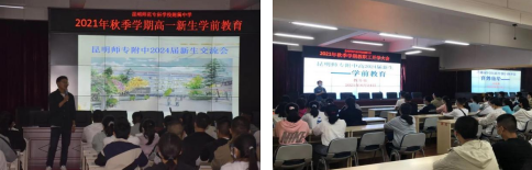 近日,昆明师范专科学校附属中学全体教职工按时返校参加教职工大会,学校领导对2021年秋季学期开学疫情防控工作、校园安全、高考加分改革政策传达、“双减”工作、师德师风等重点工作进行了安排部署。