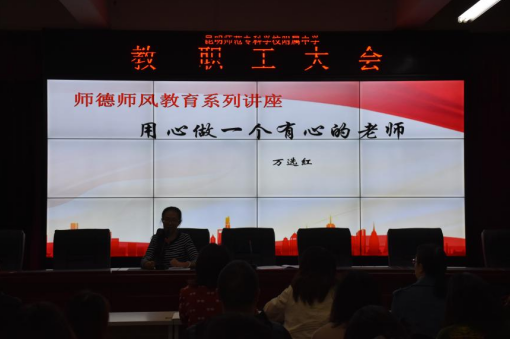 近日,昆明师范专科学校附属中学在综合楼二楼会议室召开了师德师风教育系列讲座,万选红副校长主讲,全体教职工参。