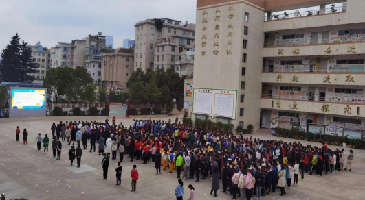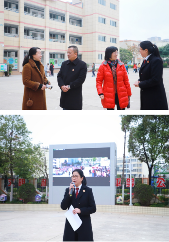 为了更好地开展宪法宣传日活动,增强宣传力度,学校特地邀请了官渡区人民检察院党组成员、副检察长李振东;官渡区人民检察院专门从事未成年人检察工作的检察官刘亦涵,利用LED电子大屏向日新和幸福城两个校区全体学生,远程联线幸福城校区,进行宪法进校园知识宣传讲座活动。