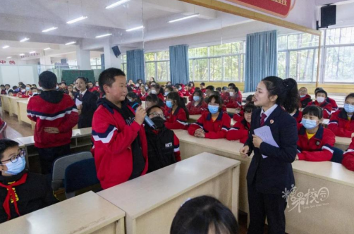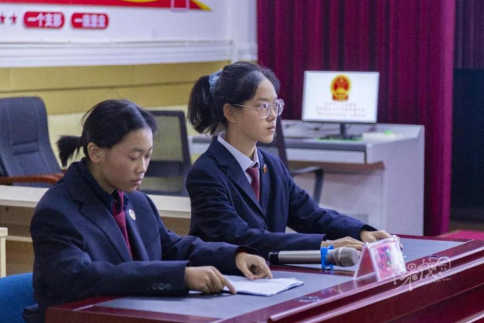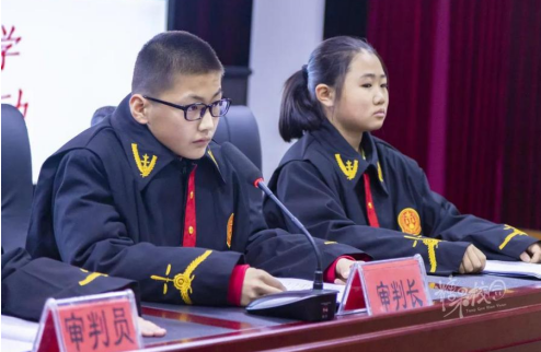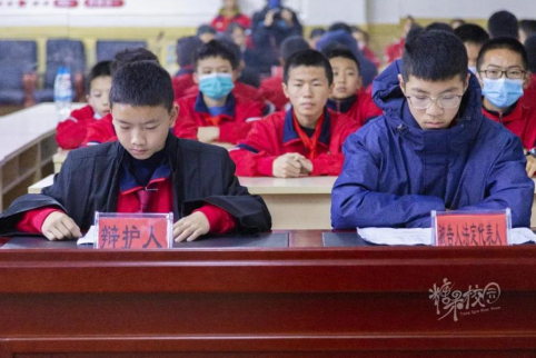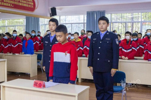 在严肃的“模拟法庭”上,由初一年级学生扮演的“公诉人”在征得“审判长”允许后,宣读了起诉书,对“被告人”犯罪的基本事实以及相关证据等内容进行了总述;随后在“法庭调查”“法庭辩论”环节,“审判长”引导控辩双方进行举证、质证,充分听取了“公诉人”与“辩护人”的意见。而“被告人”也对自己的犯罪事实供认不讳,并当庭作出了忏悔……