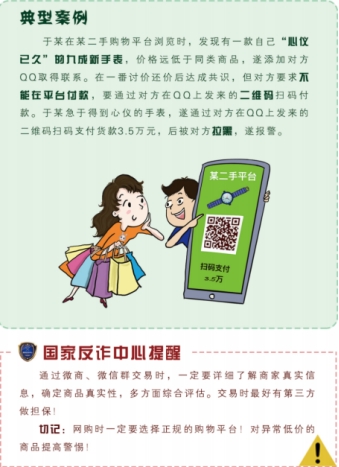 2.低价购物诈骗:通过互联网、手机短信发布二手车、二手电脑、海关没收的物品等转让信息,一旦受害人与其联系,即以“缴纳定金”、“交易税手续费”等方式骗取钱财。