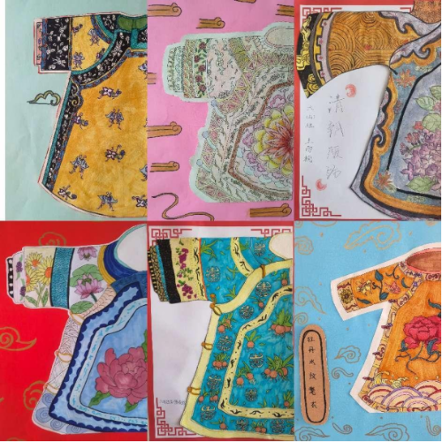 中国传统服饰大多飘逸,婉约,温柔诗意,但这份细腻背后的脉络传承,却是中国文化“以衣载道,修身明德”。老师从氅衣的服用时令、场合、着装礼仪三个方面介绍中国衣文化。在小小设计师的画笔下展现着中国传统服饰之美。