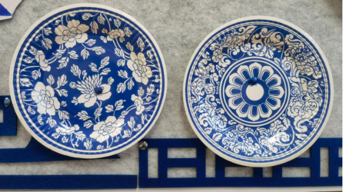 我国传统四大名瓷之首——青花瓷。孩子们体验青花瓷盘的创作,一双双巧手在白盘子上描绘出蓝色纹饰,线条均匀有力,品味国粹经典,传播华夏文明。