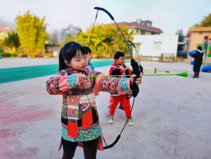 强化民族团结与趣味游戏相融合。结合一年一度运动会,正是家园营造民族团结进步教育的最好时机,各幼儿园结合办学特色,设置苗毽童趣、投壶、笔尖真情、“泼水节”等多个趣味比赛项目,在趣味多样的比赛项目中融入了民族知识、民族政策宣传,让幼儿通过有趣别样的方式学习了解民族知识和民族政策,在娱乐中感受民族团结的氛围,让教师、家长、小朋友们感受到民族团结大家庭的温暖,互交朋友、互相学习、共同成长。