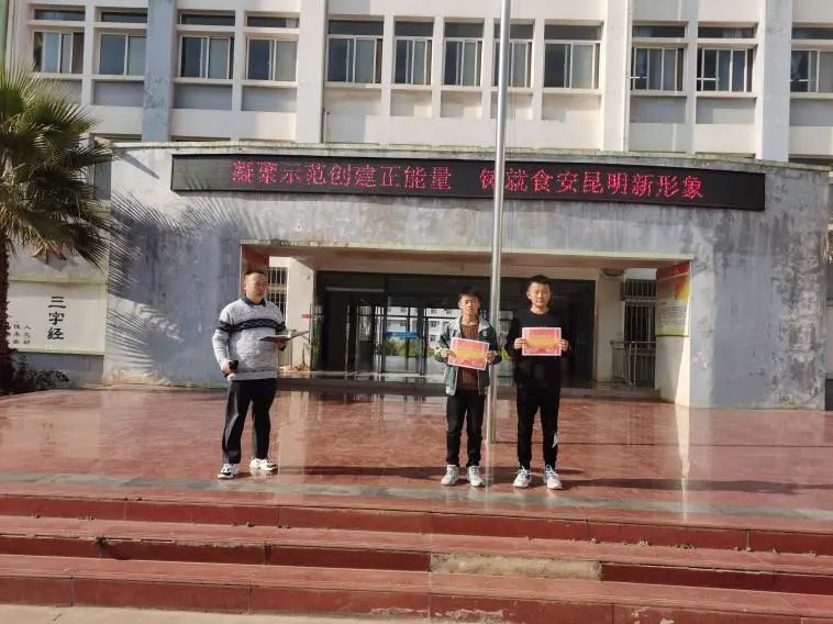 上午,学校在国旗下讲话中,对七年级三班张安涛、李昊同学捡到108元钱主动归还失主的拾金不昧精神进行了表彰,号召全体同学以他们为榜样,学习他们以人为善,诚信做人的品质。