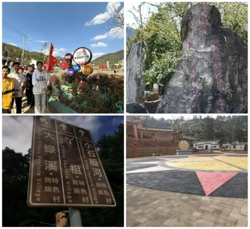 研学活动来到绿溪村,村口的路牌很有民族特色,大家观看民族团结文化广场。村委会主任普永学向大家介绍了村庄的历史及民族文化特色给村民带来的变化,他还介绍了中华民族的传统节日、饮食文化、服饰特点等。通过普主任的讲解,孩子们了解了基础的民族文化知识,知晓自己民族的历史,风俗习惯、风土人情以及学习民族音乐、民族歌舞、民族服饰等传统民族文化。接着,普主任带领同学们分别参观了党建长廊、党建初心亭、乡村文旅游客中心及农家庭院,进一步体悟中华民族一家亲的温暖。