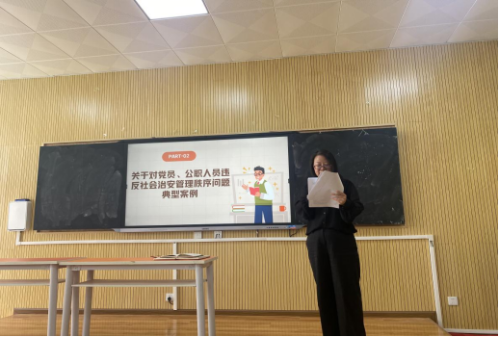 其次,谭副校长在培训会上针对党员、公职人员违反社会治安管理秩序问题典型案例进行通报,通过案例典型强调公职人员坚决不能饮酒后驾驶机动车或非机动车,坚决不能在作风建设上马虎大意,纠正“四风”,牢固树立法纪意识,规范教师的日常行为。