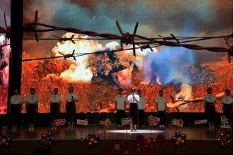 在节目的最后,张劲松老师发表了最后的演讲。张老师表示她感到了两个“非常”,其一,她表示非常荣幸能来参加本次活动,能来观看我校初二年级学生的表演;其二,她表示非常震撼,被学生们表演的专业、精美与大气所打动,也被其中情感所感动。张劲松老师用了三个字来评价本次活动,即“真”“美”“精”三个字。其“真”体现在同学们的感情真,包含了学生对梦想的热爱,对前辈的敬佩及对祖国的赞叹。还体现在了故事选取的真。通过一些历史事件,当代青年的故事来体现本次活动的意义。而“美”体现在舞台、表演、造型等方面,更体现在学生们对青春的梦想的美。“精”则体现在节目的精彩、精心,还体现在一桩桩故事的精神中。
