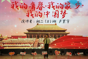 初二(9)班的两位同学为我们带来了“青春逢盛世,奋斗正当时”的主题演讲。在他们激情四射、青春洋溢的语句中。青春十分珍贵,不应浪费的道理深入人心。同时,我们也应当学习中华传统文化并传承下去,珍爱青春,奋斗当时!