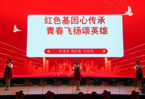 初二(10)班的三位女孩用富有感情的语言为我们讲述了“红色基因心传承”。她们富有青春活力,动作活泼。整个演讲紧扣主题感、感情丰富、语言优美。歌颂了英雄,激励同学们不负青春时光,努力奋斗,学习英雄,成为更好的自己!
