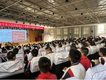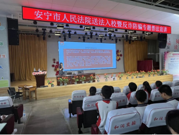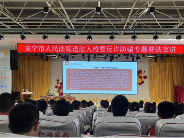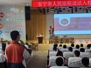 为了提高师生的识别和防范能力,安宁市实验学校于2023年10月10日下午在崇德厅,开展送法入校暨反诈防骗专题普法宣讲活动,特邀请到安宁市人民法院昆钢法庭吴绍梅法官,给八年级师生讲解识别和防范网络电信诈骗的相关知识和技巧。