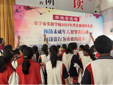 最后,学生们在签名墙上签下自己的名字,预防未成年人犯罪在行动,向违法犯罪行为勇敢说不!