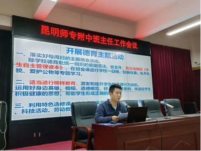 最后,由李宝强副书记做总结讲话,强调班主任是学校德育工作的中坚力量、骨干力量,学校的德育、安全工作落实需要各年级各班的全力配合,衷心地感谢各位班主任的辛苦付出,要认识到学校德育与安全工作的重要性,增强使命感和灵敏感。