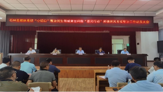 石林县委教育工委自开展“小切口”整治民生领域突出问题“惠民行动”师德师风专项整治工作以来,始终把开展好师德师风专项整治工作作为一项重大政治任务,坚持“四抓”,聚焦“四字”,高质量推动师德师风建设走深走实。