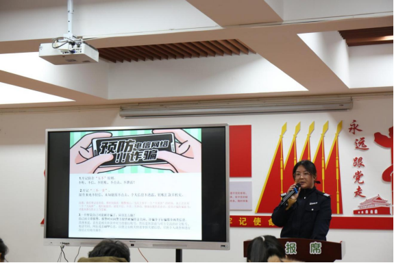 首先为大家开讲的是专家黄萌警官。黄警官通过解析《孤注一掷》电影情节,向大家详细展现了网络诈骗的实施过程,为全体教职工揭开骗子的层层套路,黄警官提醒全体教职工:要树立正确的价值取向,增强自身法治意识,远离一切非法活动,自觉抵制各种诱惑,才能共同构筑起全民防诈的“防火墙”。