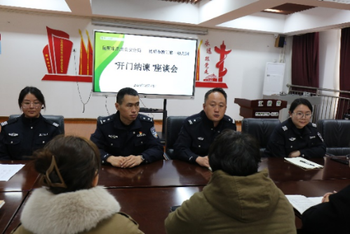 接着,呈贡分局法治大队副大队长马杰组织“开门纳谏”座谈会,征求幼儿园教职工对呈贡公安分局工作的意见建议。幼儿园后勤副园长杨扬、党总支专职副书记张颖、安保主任郭颖及幼儿园各部门代表和教师代表参加座谈会。与会教职工对呈贡公安分局工作给予了充分肯定,并结合幼儿园实际情况,从矛盾沟通化解、寻求法律援助等方面提出了一些问题,呈贡分局法治大队中队长刘恒当场作出回应和解答,对暂不能答复的问题和任务,表示将认真梳理总结各位教职工提出的宝贵意见建议,逐一落实,确保大家的意见建议落地生根、见到成效。