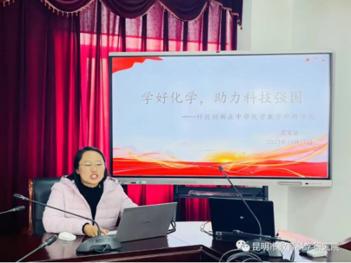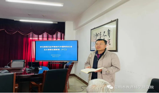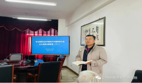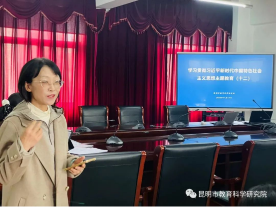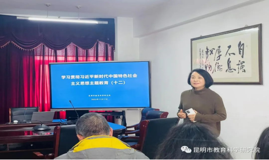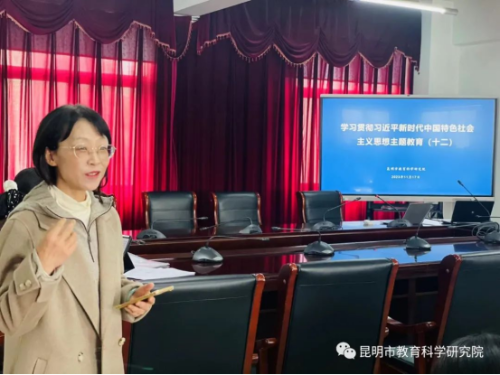 2023年11月17日,昆明市教育科学研究院继续组织开展学习贯彻习近平新时代中国特色社会主义思想主题教育专题学习第十二场。此次学习在昆明市教育科学研究院工会主席杨春梅的主持下,邀请了昆明市教育科学研究院初中化学教研员窦星星老师,心理健康教育中心教研员杨博雅老师主讲,义务教育研究室副主任朱兴强,心理健康教育中心主任仵云霞分享了学习体会。副院长李志坚做了总结发言。