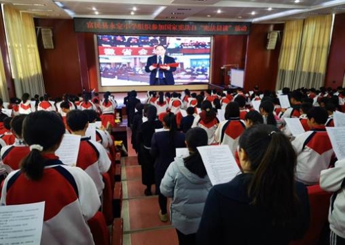 在氛围中感受宪法的威严。为了让全校师生同步参与教育部组织的2023年国家宪法日“宪法晨读”活动,体会和感悟宪法威严。永定小学采取1+N的会场组织方式,即学校报告厅为主会场,全体行政人员及六年级全体师生着正装和校服在主会场参加学习,一-五年级各班教室为分会场,由各班班主任及科任教师在教室组织学生学习。