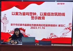 为持续深化“以案促改”警示教育,正确把握党风廉政建设工作的新形势、新任务和新要求,扎实推进清廉学校建设,营造风清气正的育人环境。12月4日,安宁市纪委市监委驻教育体育局纪检监察组组长谢玉仁同志莅临我校开展了警示教育活动,我校全体党员教师、坐班人员、合同制教师参加了此次会议。
