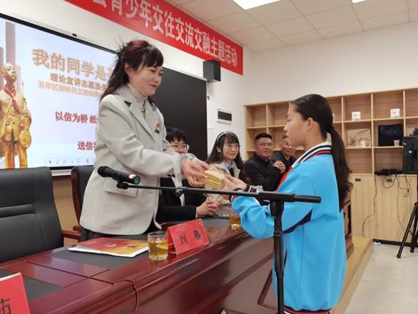 “学校是铸牢中华民族共同体意识的思想前沿阵地,相信通过与宁洱民小学生们‘互通互融、以信达情’,我们更有信心讲好聂耳和国歌的故事,讲好民族团结誓词碑的故事。希望两校聚焦青少年交往交流交融,共同铸牢中华民族共同体意识。”长春小学校长刘春向宁洱县民族团结实验小学师生们表达美好愿景,并将30封书信交给了宁洱县民族团结实验小学学生代表。